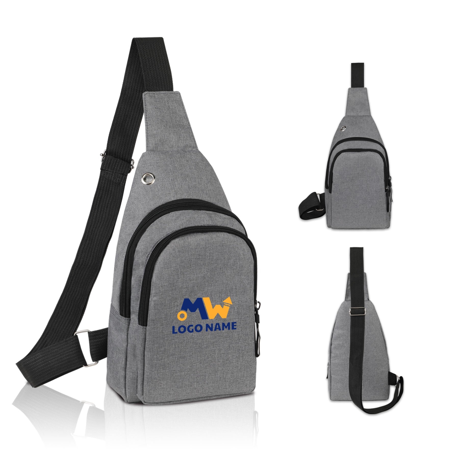 This sling backpack is made of durable 300D polyester. Two zippered compartments make it easy to take your essentials with you on the go. This sling backpack features an adjustable shoulder sling and earbud hole. Add your custom logo to personalize this great year round gift bag. It is perfect for outdoor hiking, camping, climbing, cycling, walking, day trip, vacation, travel, school, shopping, gym and so on.